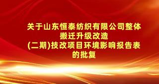 關(guān)于山東恒泰紡織有限公司整體搬遷升級改造 (二期)技改項目環(huán)境影響報告表的批復(fù)
