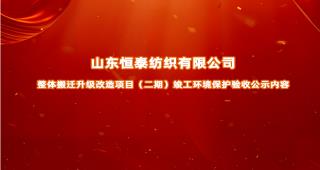山東恒泰紡織有限公司整體搬遷升級改造項目(二期)竣工環(huán)境保護(hù)驗收公示內(nèi)容